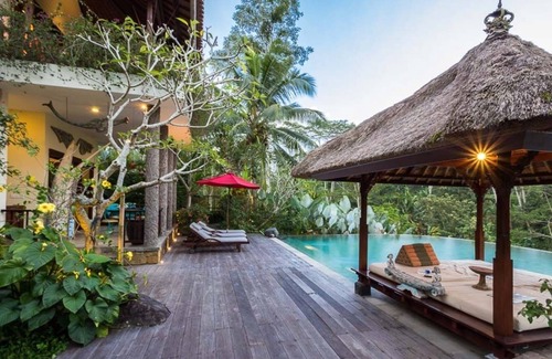 Located in a tranquil area surrounded by authentic Indonesian country life and landscapes. This 4 bedroom villa, designed by the South-East Asian architect Pop Danes, features traditional Balinese pavilions combined with 5-star facilities. This villa is ideal for families or groups of friends looking for a serene and luxurious getaway close to the center of Ubud. The beauty and size of this villa makes it a perfect place for special events such as wedding.