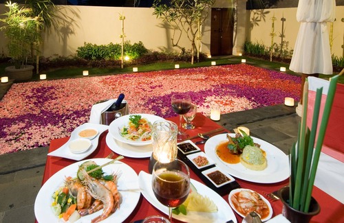 The property is the exclusive resort provides seclusion with the convenience of being a short distance by our shuttle service from the lovely Kuta with its white sandy beach, restaurants and shops and 5-minute walk to Mall Bali Galeria shopping center.