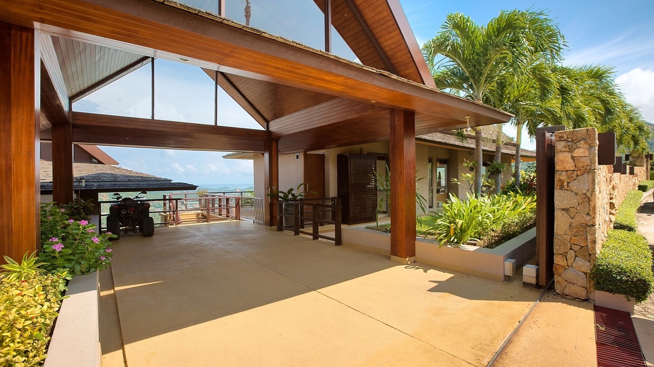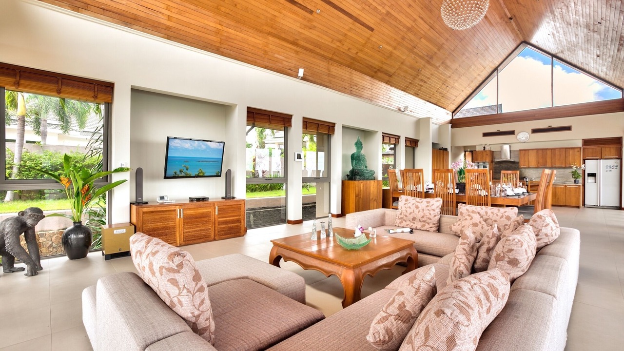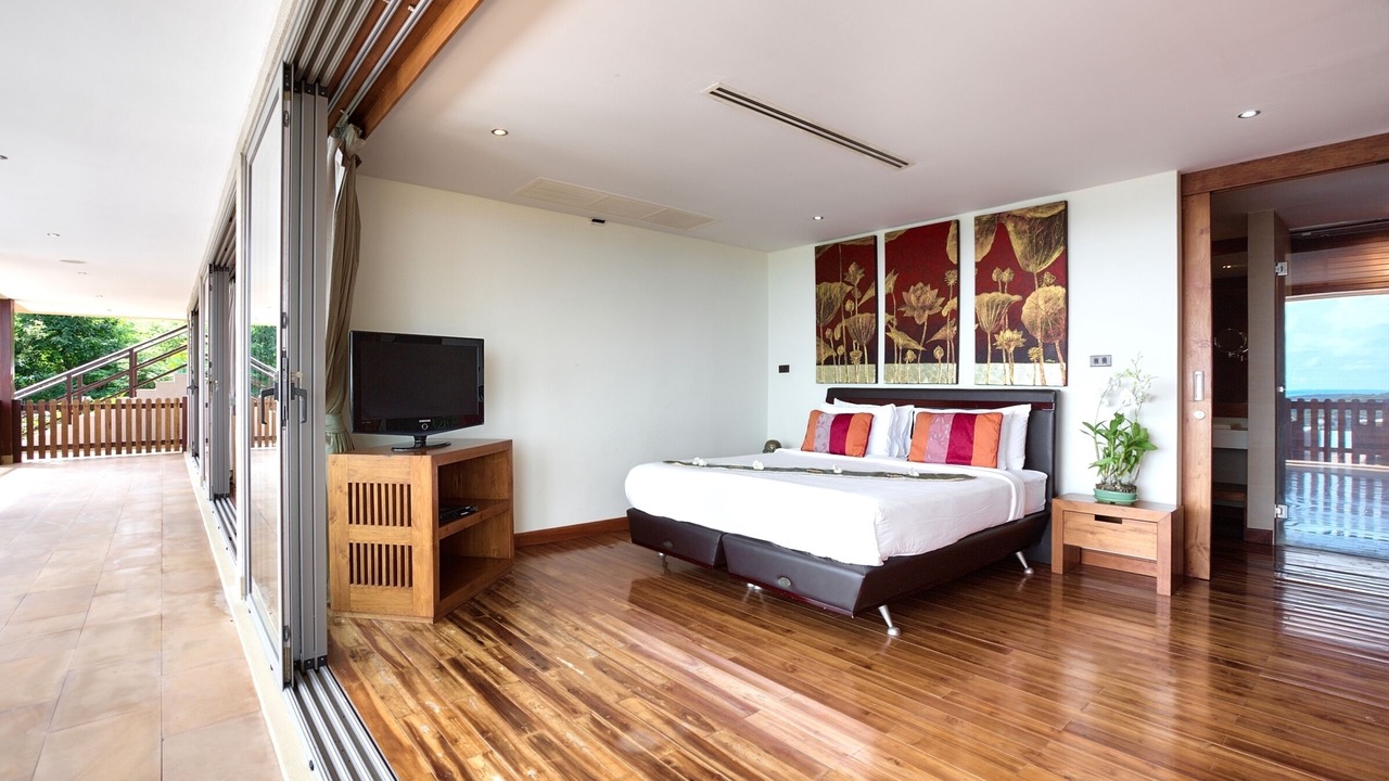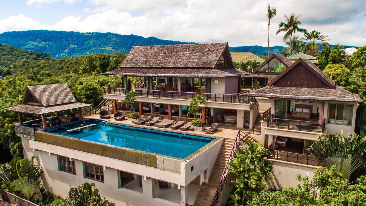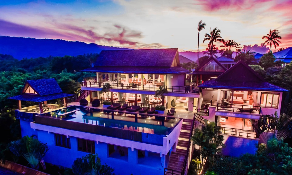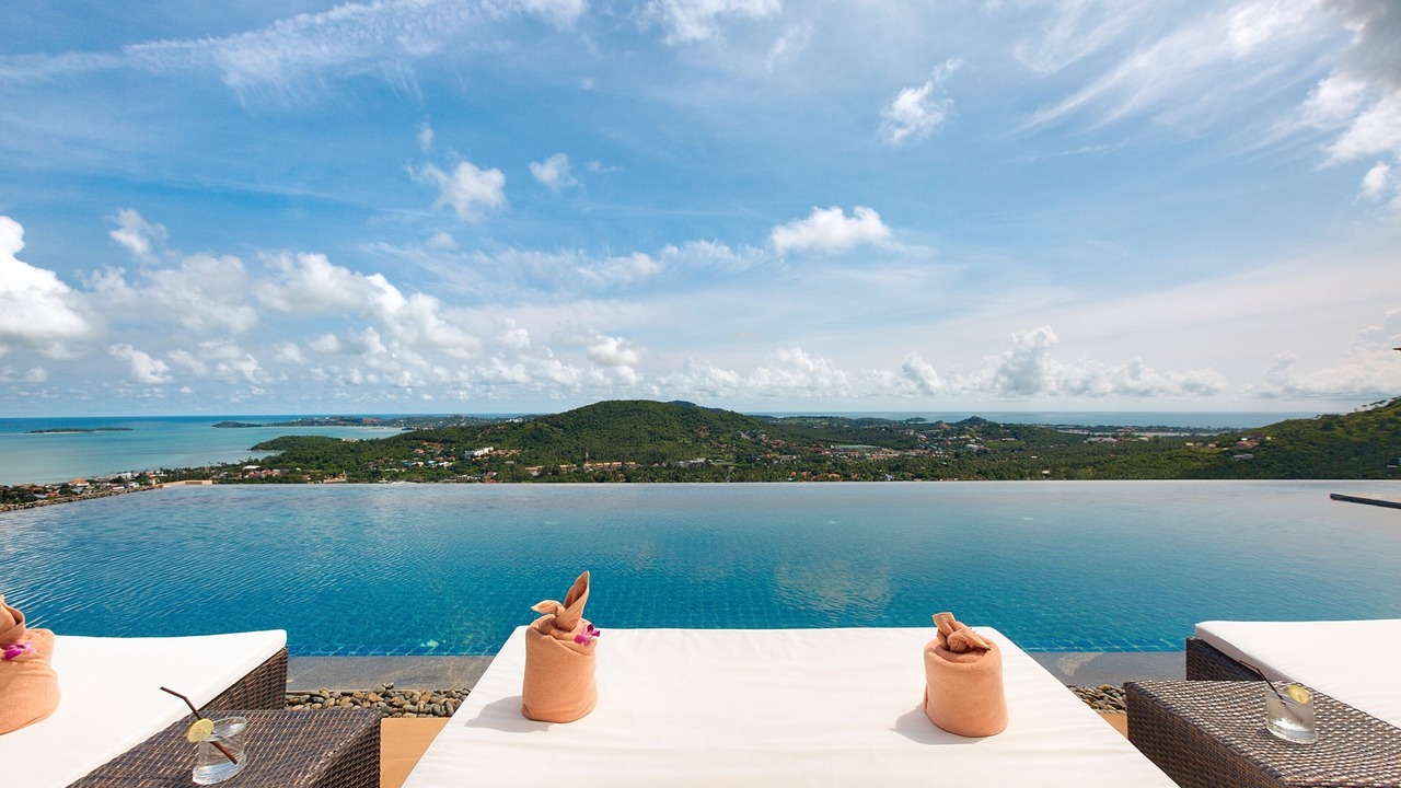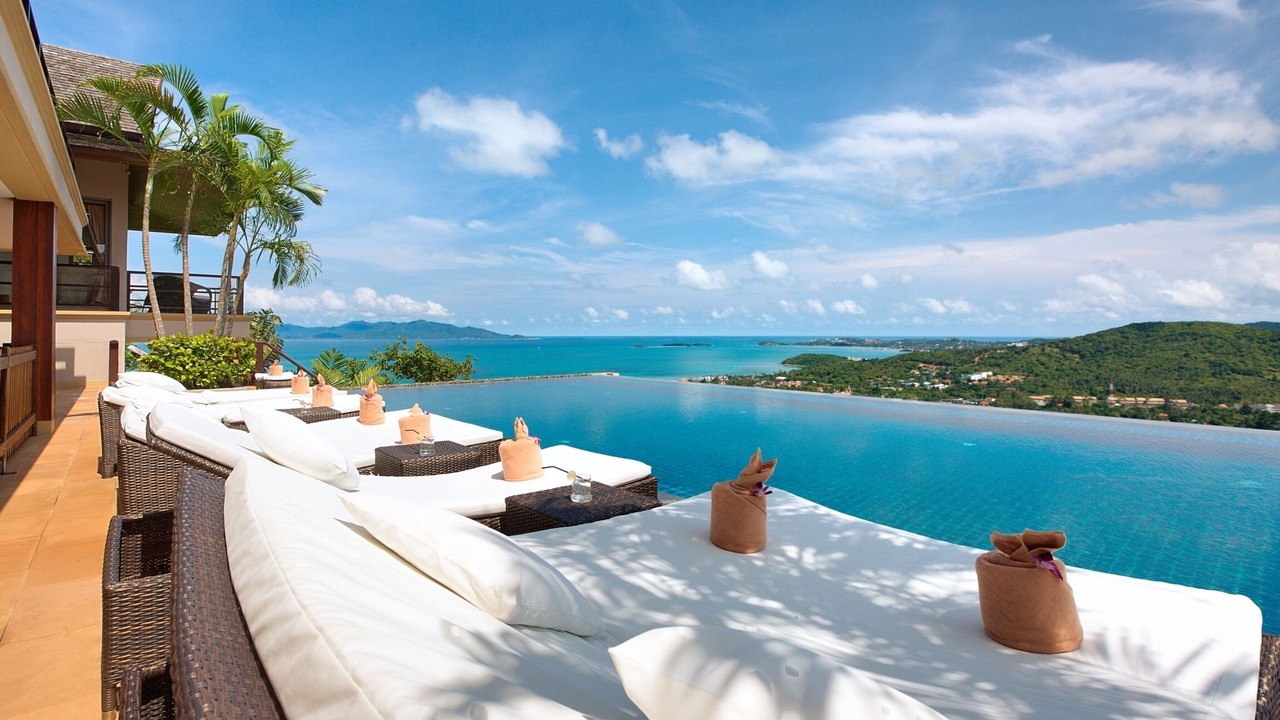This lavish 5 bedroom villa is located high in the hills of Bo Phut, affording its guests a high quality and stylish standard of living along with exquisite panoramic sea views.