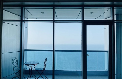 Beachfront paradise just 30 minutes from Dubai. Fully furnished with 2 bedrooms and 2.5 bathrooms. Full sea view. Enjoy the panoramic sea views from all 3 windows and the walk out balcony of the unique master BR . Take the elevator down and you are across the beach. Enjoy swimming, jet skiing and other water sports. Walk to restaurants, clubs, salons, minimarts and pharmacies. Walk along the beach with your family or go dancing with your sweetheart. Beach umbrella and beach chairs provided.