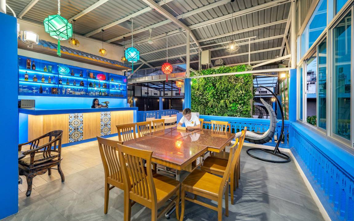 The top floor is where the Rainy season takes over. Against the cozy blue wall, the guests will find a shallow pool terrace for sunbathing and cool rooftop bar with ice-cold drinks. On top of that, the interiors are draped with plush fabrics, which are reminiscent of Nakun family business, adding the finishing touch to this one-of-a-kind hostel. With a name synonymous with grandmother in Chinese dialect, AMA will always draw guests close to home. The symbolic logo also resembles the strength of the signature railing that withstands the harsh passing of time and still stands firm all these years like a kind, endearing grandmother who always take care of us with her warmth and grace.el in Khaosan Road area with great facilities.