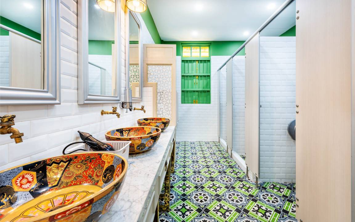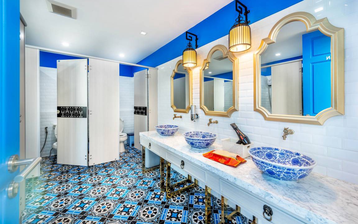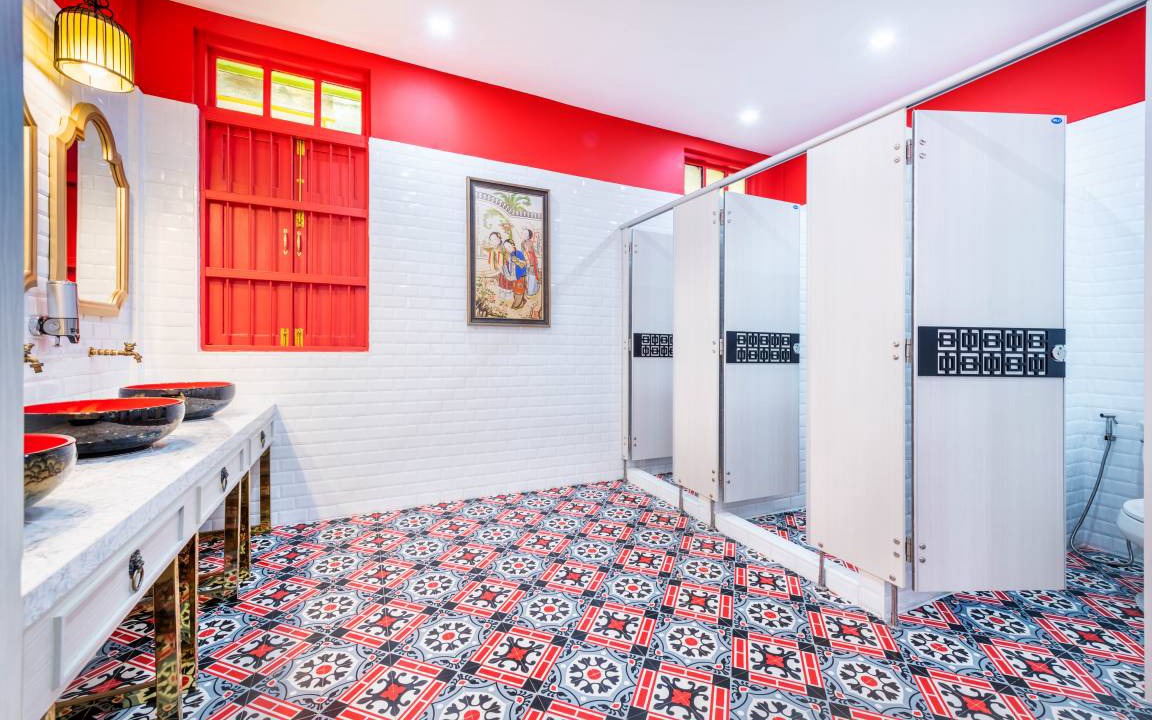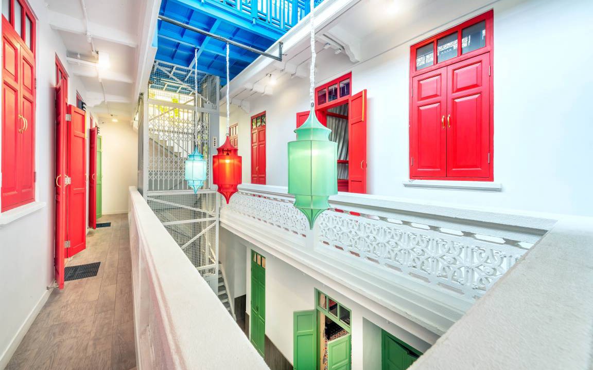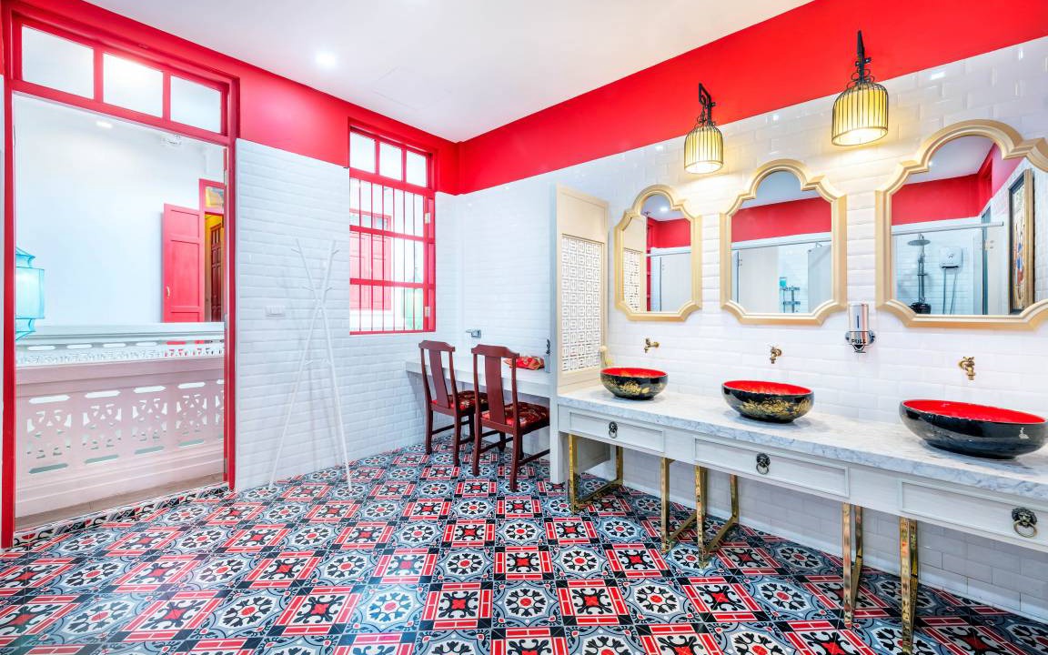 We the mastermind behind the whole concept, decided to transform this elegant antique house into an urban-chic hostel. With 14guest rooms, the sophisticated space is tastefully renovated with a modernized look that continues to honor the past with elements from its colonial legacy. He aims to retain the original features of the significant structures, and the homey vibes of the house by giving only a few interiors a modern makeover, so guests get to immerse in its vibrant culture and valuable heritage. Embracing the traditional touches and contemporary designs, AMA hostel preserves rich, remarkable details, from Chinese quadrangles and intricate guard rails to antique parquet floorings and decent wooden windows. Colorful hues are what bring the old artistic surrounds to life. Stylish and sleek, each floor is decorated with subtly different shades, inspired by the moods and tones of the four seasons. On the first floor, the lobby area reflects Spring and Winter in fresh green and eggshell white, offering a warm and welcoming ambiance once the guests enter the door. There's also a little corner for those who'd like to enjoy a cup of coffee in the relaxing cafe The second floor draws upon the sense of Summer, featuring romantic red that elevates the space with sensual hints. Another amenity includes the massage room that is also set on the same floor.