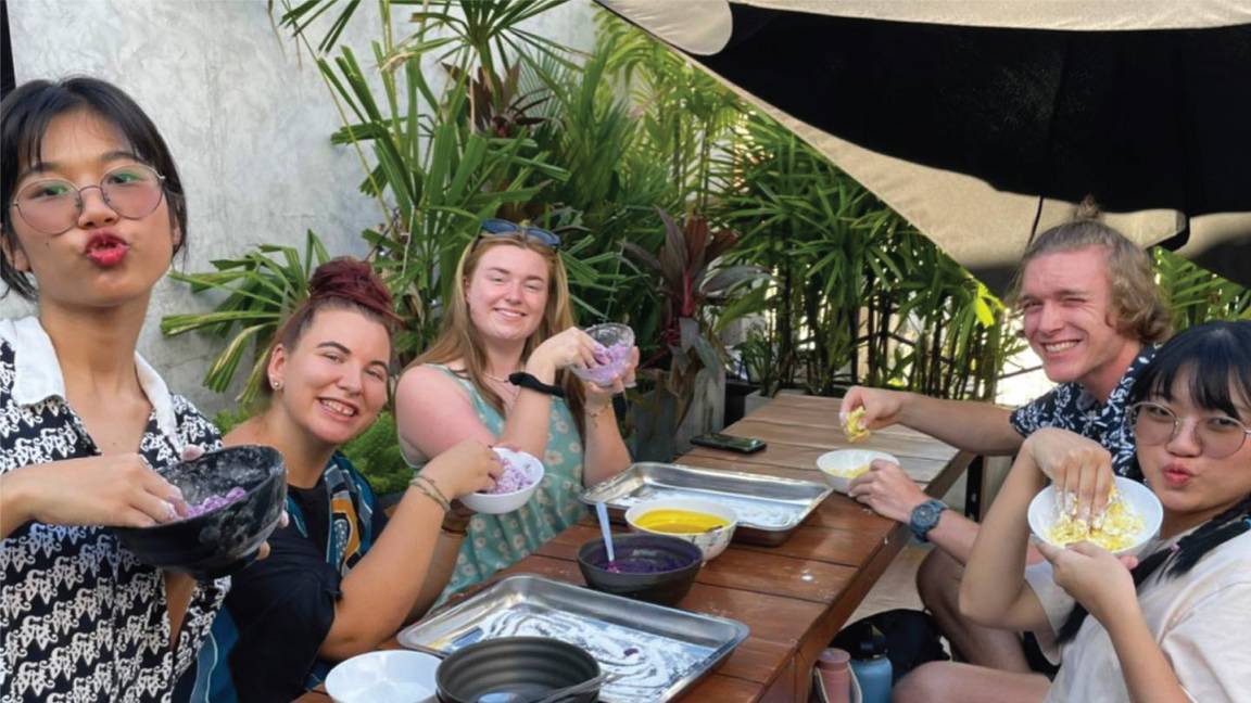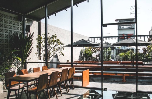 Our place is all about stylish affordability. Choose from comfy private rooms or cozy shared dorms, then head up to the rooftop terrace â€" the perfect resting spot after a day of exploring temples, cafeÌs, or nearby street markets. Just steps away, you’ll uncover street food heaven: from sizzling satay skewers to traditional Thai food, you’re never far from your next culinary adventure. And when you're craving a mellow moment, drop by our in-house cafeÌ, serving up Thai tea soft serve. For the modern digital nomad, we provide 24/7 Wi-Fi, plenty of power outlets, and an air-conditioned co-working space where productivity meets comfort.