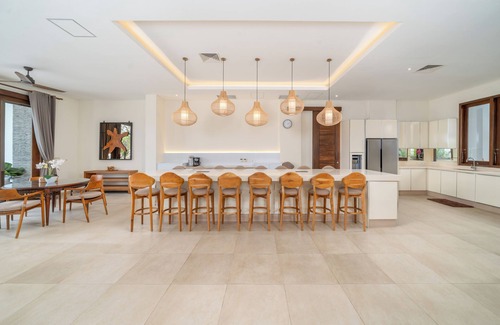 Guests have full unrestricted and private access to all the main areas of the Jos Villa Canggu, including the gym and games room, pool and garden, outdoor and indoor living and dining areas, and the kitchen area.