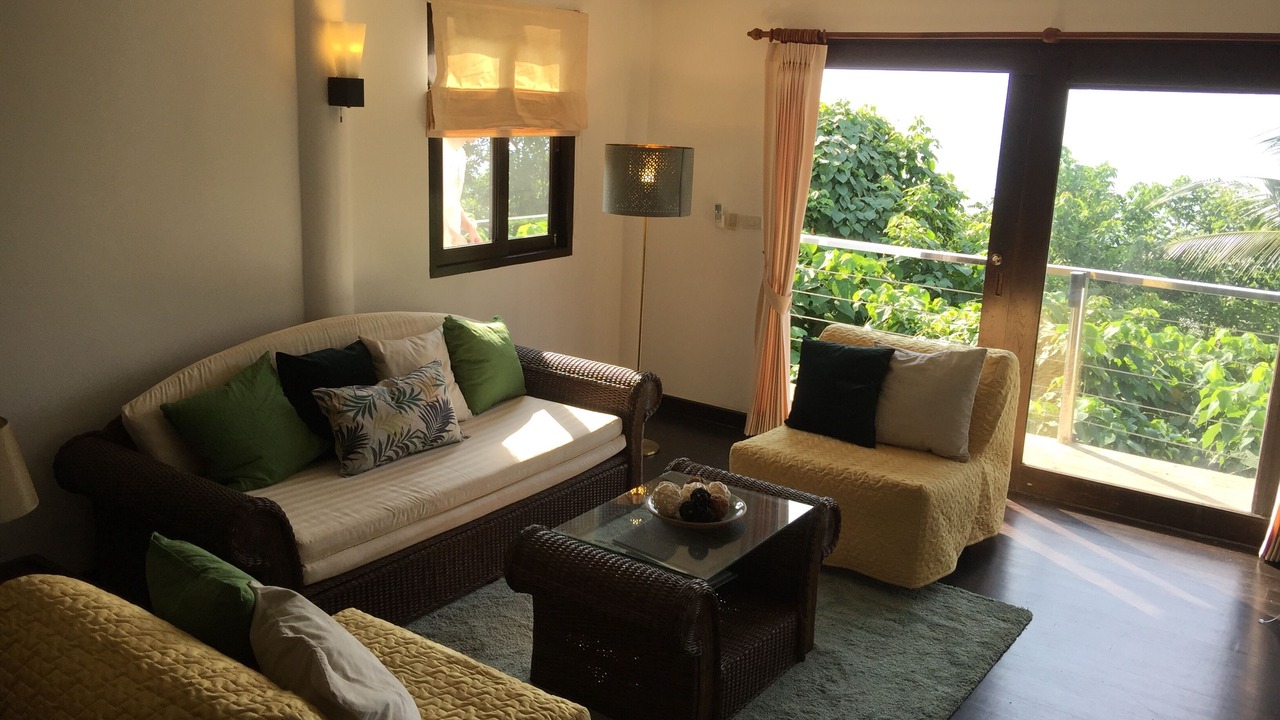 Its located in Taling Ngam - the Sunset and quiet part of the Island where only the luxury Resorts are. Its located on a hill with perfect sea view from all rooms. You just walk down the stairs to the beach - or free transport up and down the hill via Buggy