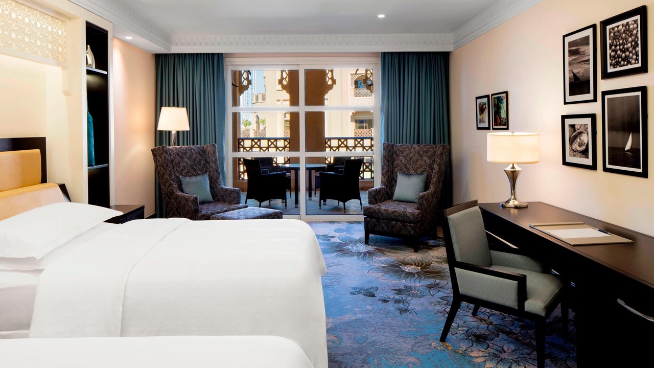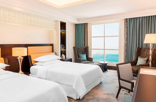 Sheraton Sharjah Beach Resort & Spa offers 349 air-conditioned accommodations, which are accessible via exterior corridors and feature iPod docking stations and minibars. Beds feature Select Comfort mattresses. LED televisions are featured in guestrooms. Bathrooms include separate bathtubs and showers, bathrobes, bidets, and complimentary toiletries.