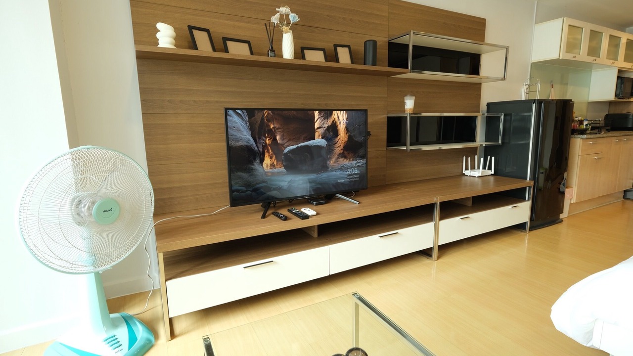 Enjoy a SMART TV with Netflix, YouTube, and local channels, plus a fully equipped kitchenette with a refrigerator, microwave, and complete cooking essentials—pans, pots, utensils, plates, and basic condiments like cooking oil, salt, pepper, soy sauce, vinegar, and fish sauce.