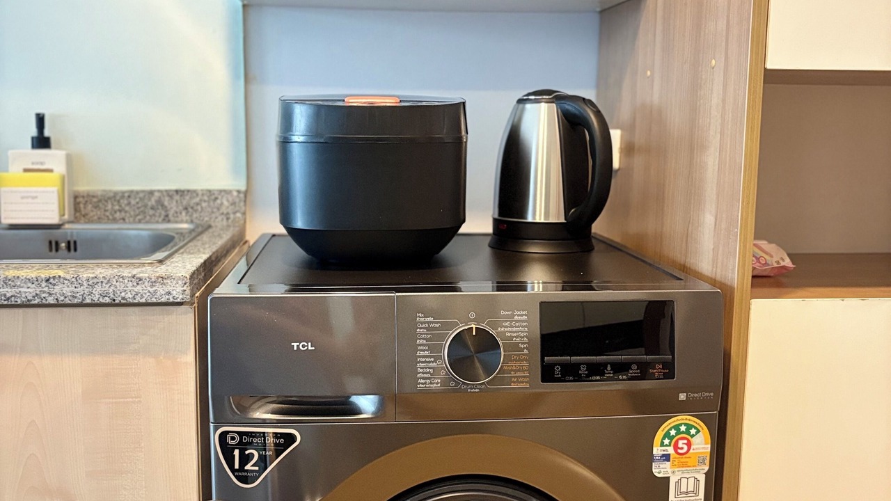 I provide full bathroom amenities, including shampoo, conditioner, liquid bath soap, toothbrushes, and tissues. For added convenience, there’s a washing machine with a built-in dryer and free laundry pods—no need to worry about drying clothes!